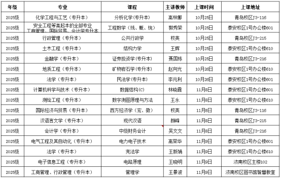 我校采取线下面授与在线直播相结合的方式进行授课,泰安校区、青岛校区、济南校区分设面授教室。校本部及各校外教学点通知学生按照课表积极参与线下面授。