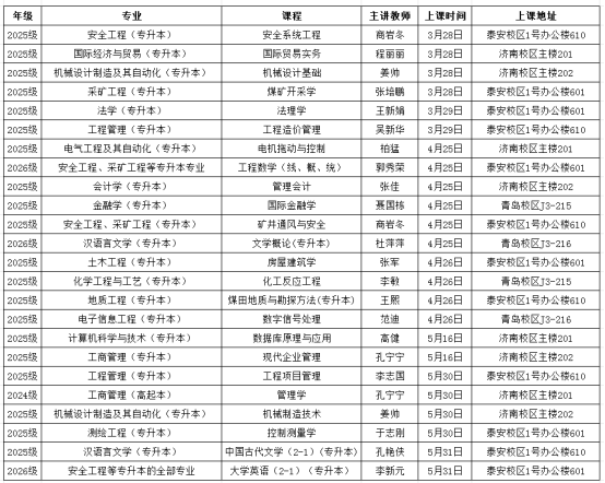 我校部分课程采取线下面授与在线直播相结合的方式进行授课,泰安校区、青岛校区、济南校区分设面授教室。校本部及各校外教学点通知学生按照课表积极参与线下面授。